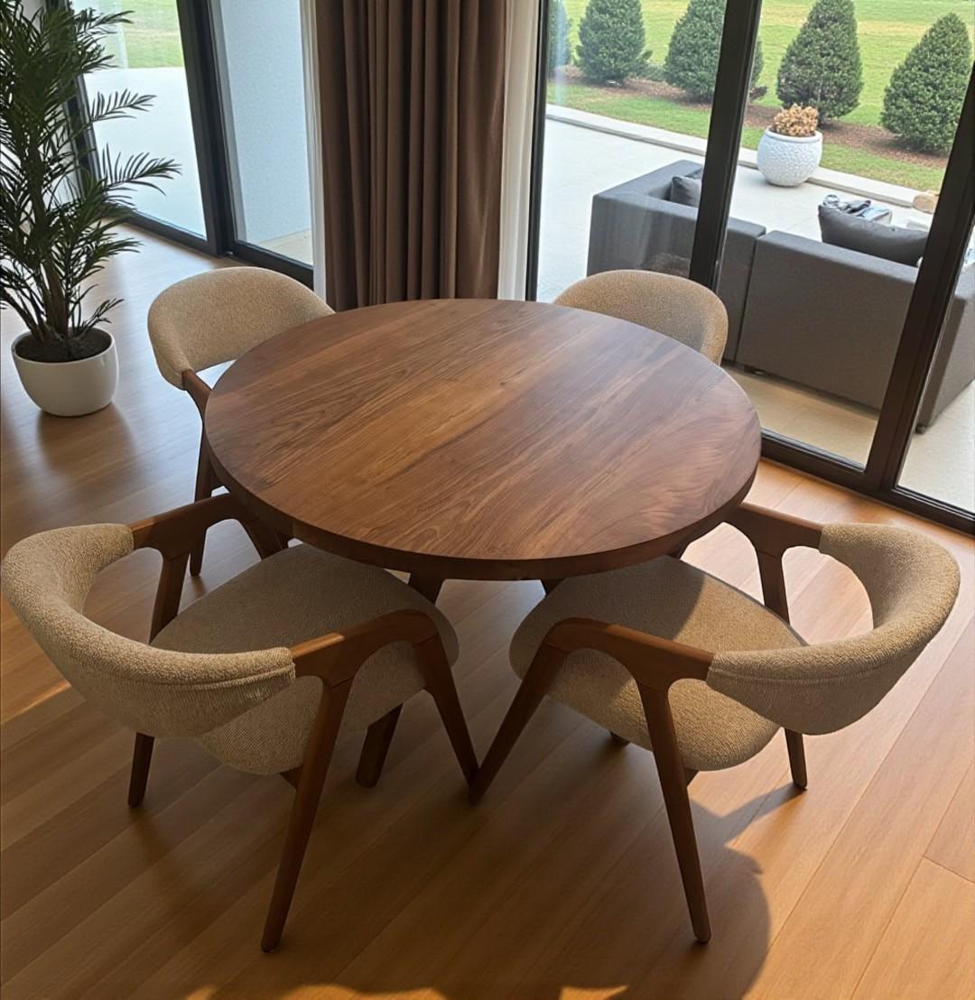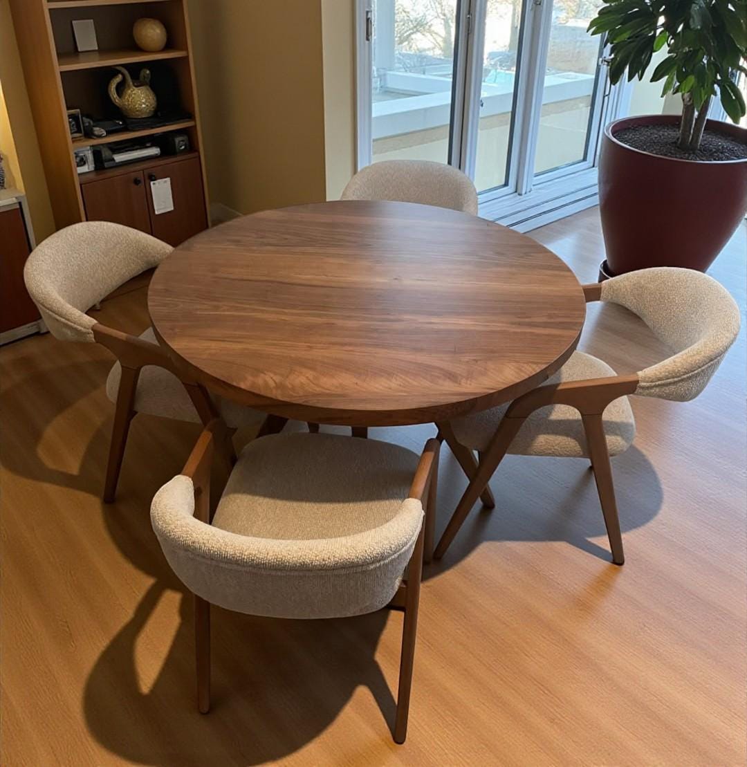 Custom Round Walnut Dining Table - Solid Wood, Handcrafted Dinner Table for Kitchen & Dining Room