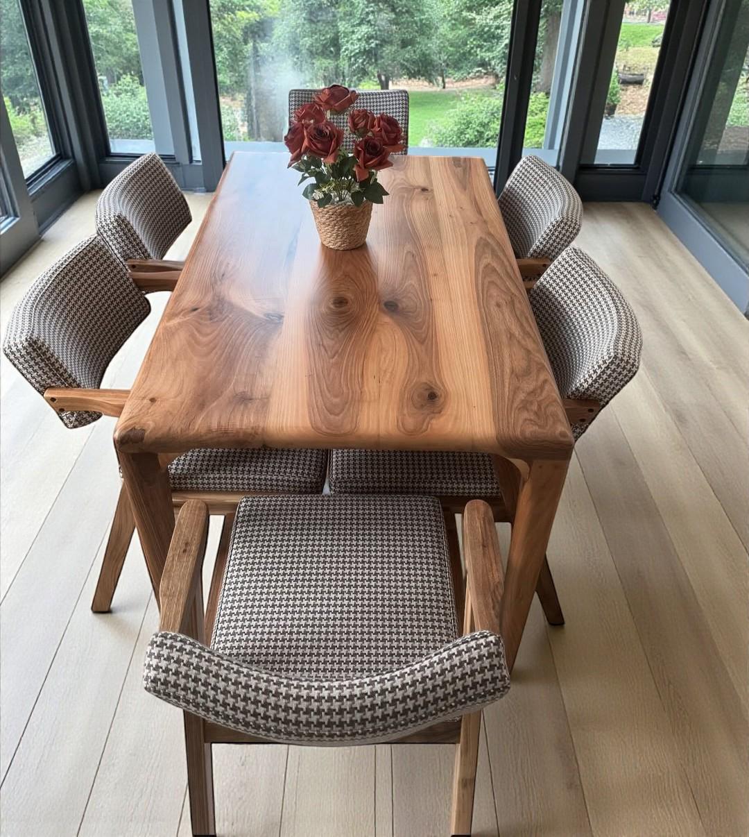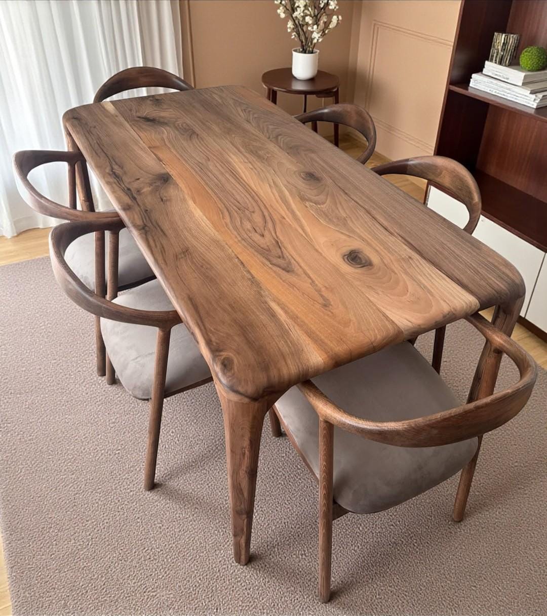 Walnut Dinner Table With LEG, Live edge walnut table , Dining Table Handmade, Unique Dinner Table, Rustic wood table, Rustic Dinner Table