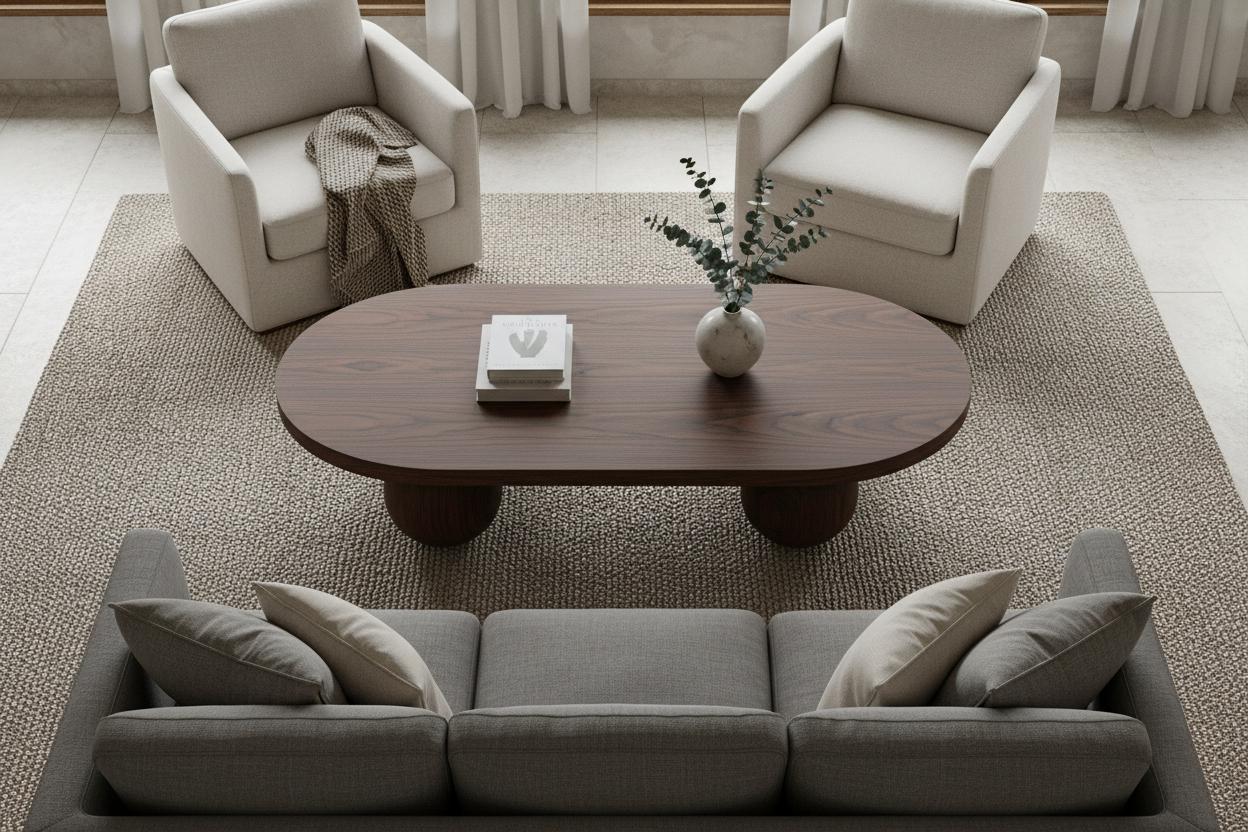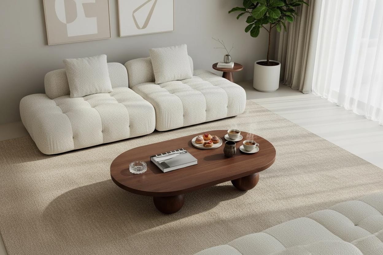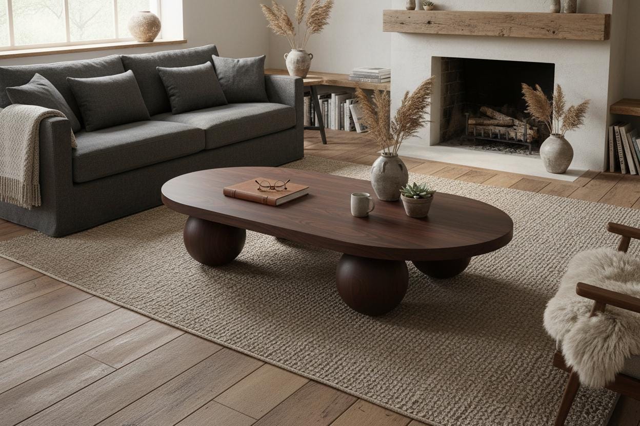 Handcrafted Walnut Coffee Table, Rustic Modern Oval Design