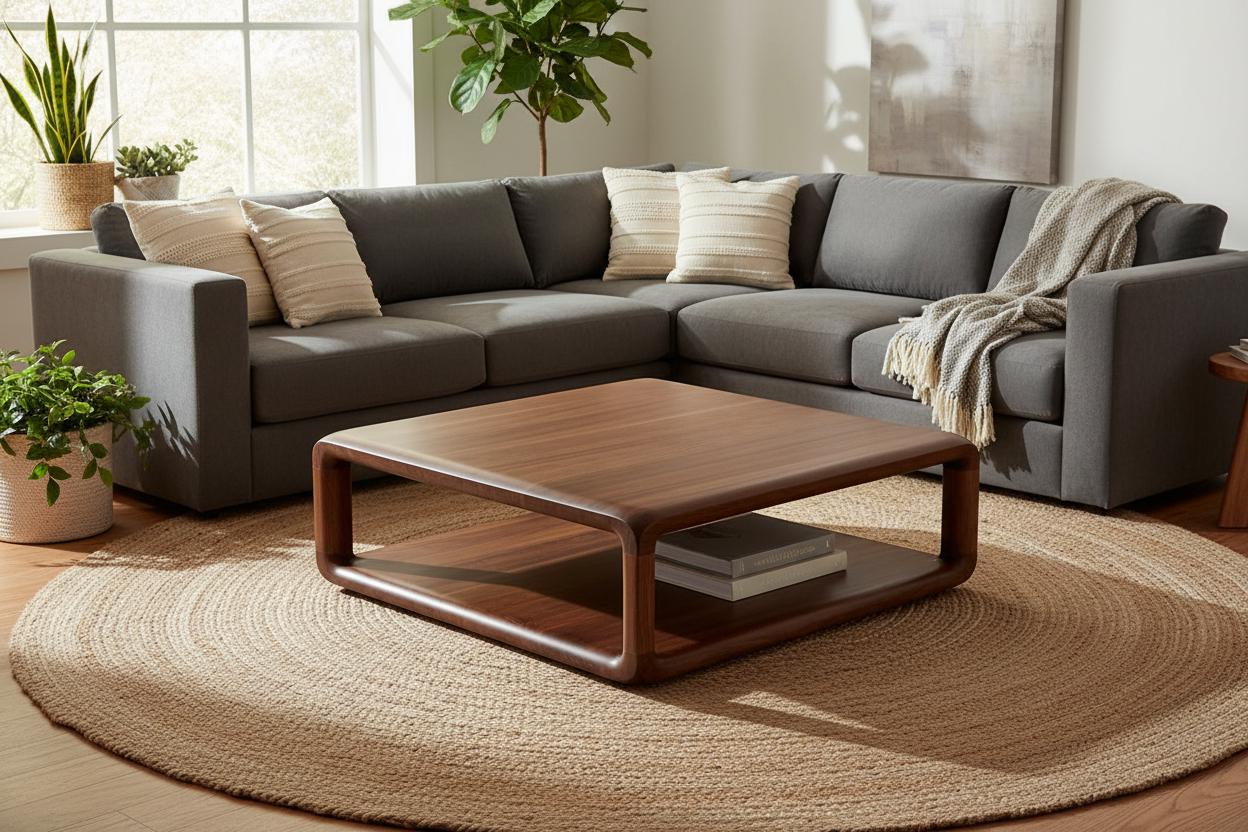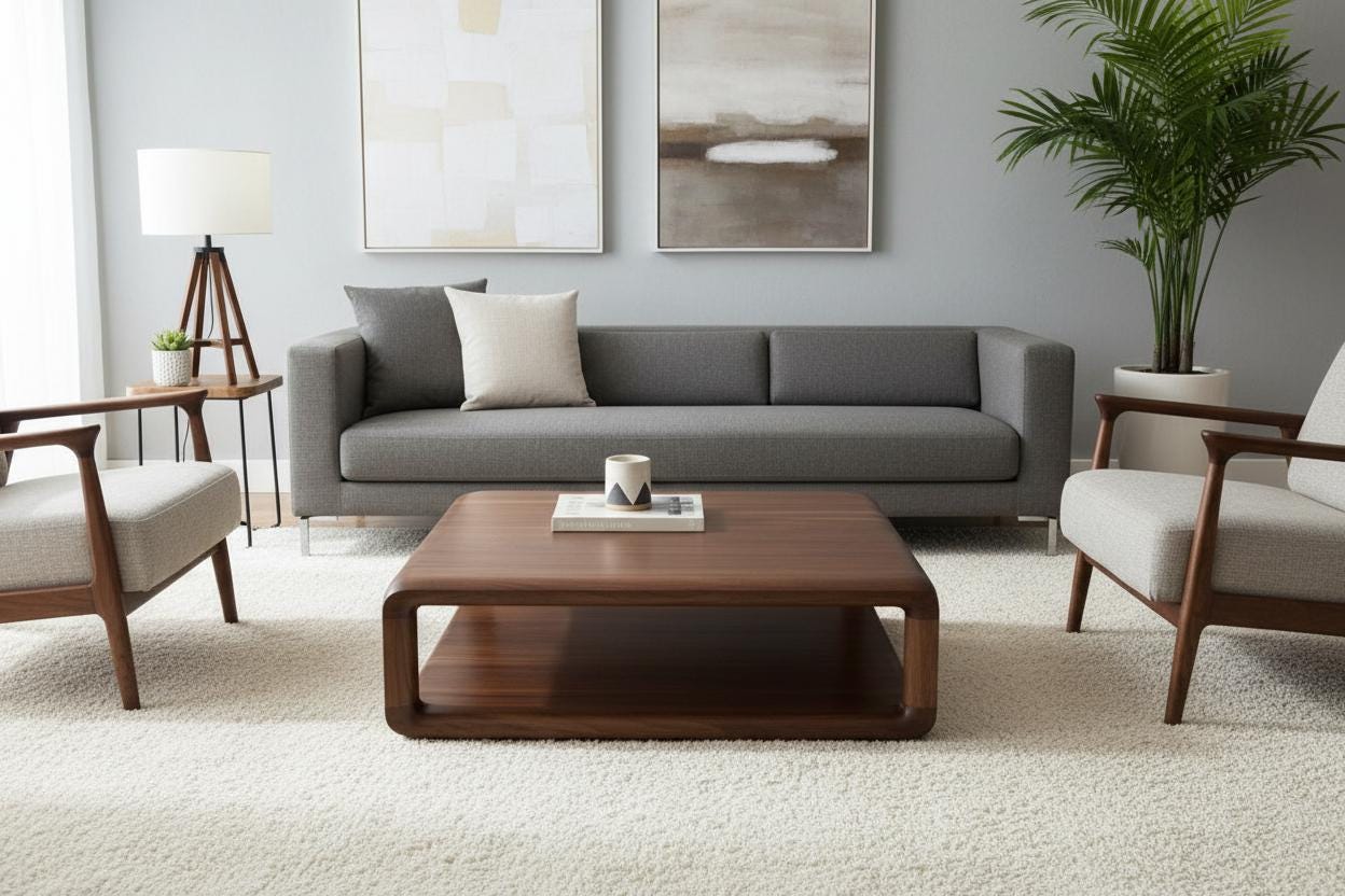 Handcrafted Walnut Wood Coffee Table, Rustic Modern Oslo Model